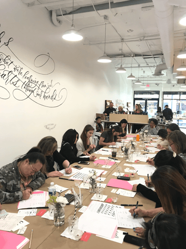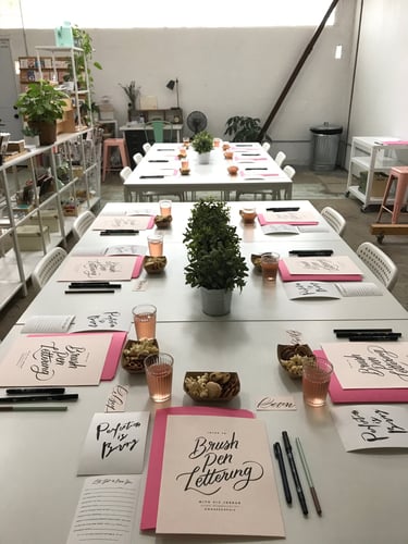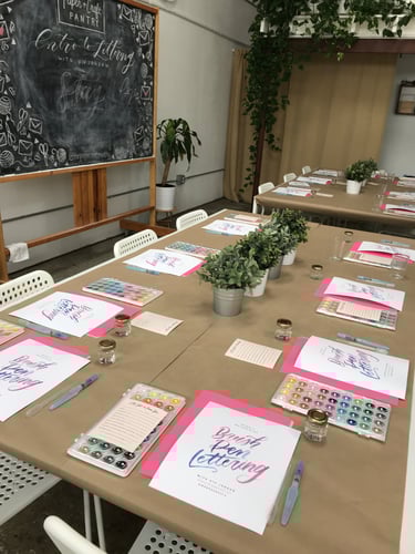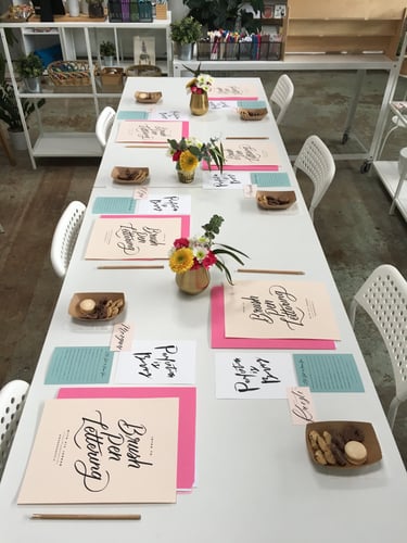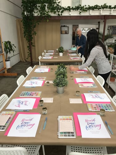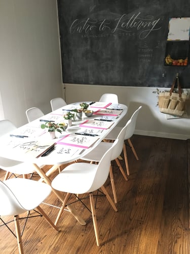 I LOVE to teach and connect with people who are excited to learn something new. I have taught at birthday parties, baby showers and Im also able to meet for lettering private lessons. I joke with my friends that I'm a "modern birthday clown" available to provide a fun experience for any occasion!
